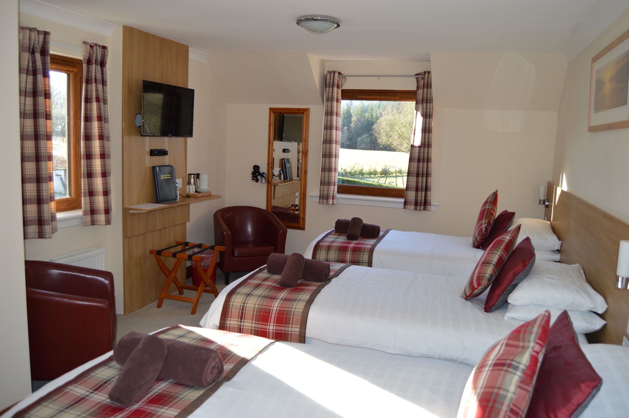 Bracarina House is situated in the village of Invermoriston. Nestled between the Great Glen Way and Loch Ness, it is the ideal location for families, couples, walkers, cyclists, motorcyclists and climbers. The rooms are spacious, modern and comfortable. We offer a boot room together with a garage for the safe storage of bikes and motorbikes. We offer warm, comfortable and spacious accommodation in both the bed & breakfast and the studio. Our en-suite bedrooms are generously proportioned, attractively presented with colour-coordinated furnishings throughout.