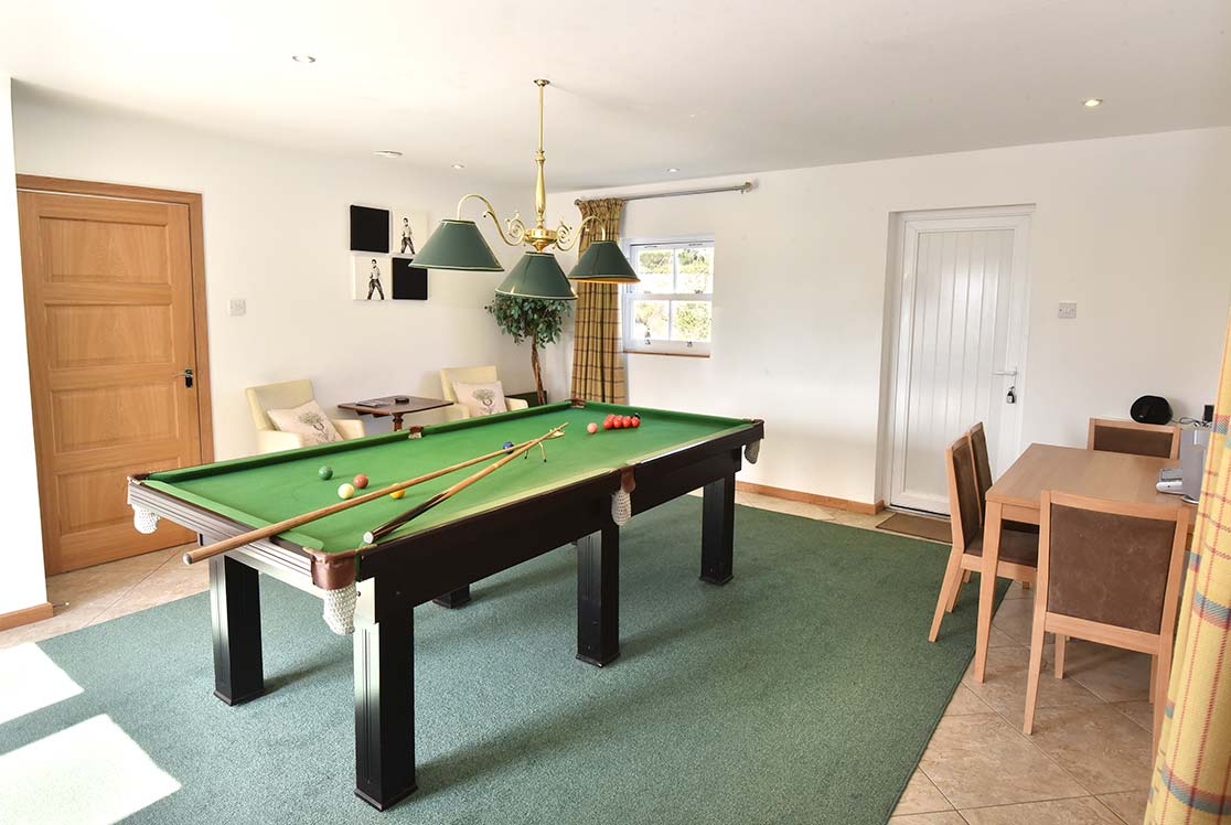With a Cinema Room with sky and sky cinema package, Snooker Room, Gaming area, Bar area, Table Football, Football Pitch and Children’s Playpark. A huge dining table under woodland sparkly chandeliers and a bespoke outdoor table over looking the Loch you can enjoy fabulous meals with your friends or family. A huge sofa in the lounge with dance floor area complete with disco ball, fairy lights and magical trees!